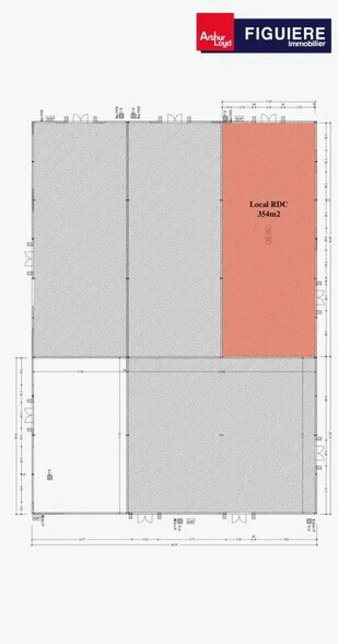 | Espace total disponible | 354 m² | Type de bien | Local commercial |