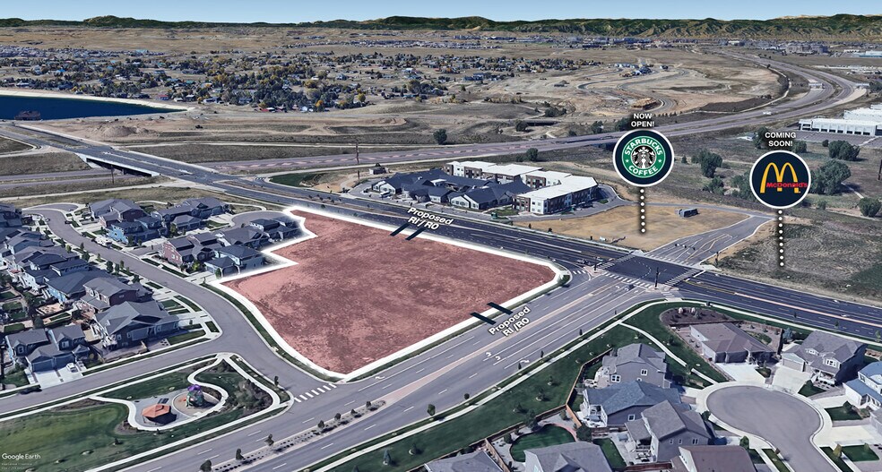 Terrain de vente au détail 2,72 AC à vendre ou à louer Emplacement de l'intersection signalisé à la sortie du chemin Chambers de la E-470 À l'entrée du développement de Cottonwood, plus de 2 000 unités domestiques Un concept national d'hôtel, de café et de restauration rapide sera bientôt disponible juste de l'autre côté de la rue L'automobile et la garderie sont des utilisations approuvées