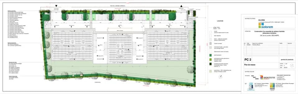 Situé dans la ZAC de la Louvière, ce programme neuf propose 12 cellules artisanales et tertiaires sur un terrain clos de 5 800 m². Il se compose de 3 bâtiments, offrant une surface totale de 2 078 m², divisible à partir de 124 m². Les + de l'offre : - Cellules modulables : 124 m², 138 m² ou 257 m² (mezzanine comprise), - Bâtiments neufs, livraison brute, clos - couvert, fluides en attente, - Hauteur libre : 6 m, dallage béton (1,5 t/m²), mezzanines (0,5 t/m²), - Porte sectionnelle motorisée, menuiseries PVC double vitrage, lanterneau en toiture, - 40 places de parking, dont 3 privatives par cellule et 4 avec bornes électriques, - Raccordements individuels en attente : électricité (18 KVA), eau, télécoms, - Options disponibles : Branchement gaz, Regroupement de cellules. - Accès plain-pied - Dimensions : 3 bâtiments dont 2 de 30,9x22met un de 18,6x22,2m environ - Surface : 124, 138 ou à 257 m² mezzanine comprise (97, 108 et 217 m² au sol) - Profondeur : de 10,8 m à 21,80 m - Hauteur libre : de 5,75 à 6,70 m, contrainte à 2,70 m au niveau de a mezzanine - Finition : livraison brute clos - couvert et fluides en attente - Bâtiment en structure métallique, couverture isolée de type "PV Ready" (la structure et les équipements associés sont conçus ou pré-équipés pour faciliter l'ajout ultérieur d'un système solaire photovoltaïque) et façades en bardage métallique simple peau - Cellules séparées par murs coupe-feu en agglos de degré coupe feu 1h - Dallage béton : charge admissible de 1,5 tonnes/m² - Mezzanines : charge admissible de 0,5 tonnes/m² - Porte sectionnelle motorisée de dimensions 3,5x3,8 m et porte d'entrée séparée - Menuiseries en PVC en double vitrage ouvertures OF/OB avec volets roulants manuels au rez de chaussée et fenêtres fixes en polycarbonate translucide à l'étage - Un lanterneau en toiture (type skydome) - Plomberie sanitaire : livraison brute fluides en attente. - Raccordements individuels aux réseaux posés en attente : - électricité (puissances maximales de raccordement - seront de 36KVA en tarif bleu pour les 4 grandes cellules et de 18KVA en tarif bleu pour les autres cellules) - eau portable - eaux pluviales - eaux usées - télécoms - Tableau de comptage individuel pour chaque lot (câblage et compteur à la charge de l'acquéreur). - Aménagements paysagers : - Grillage rigide en panneaux acier laqué - Grillage semi-rigide en acier galvanisé - 2 Portails coulissants autoportants motorisés, commande par télécommande et boucle de détection - en sortie. - 2 portillons, compris gâches électriques. - Boites aux lettres. - Aménagements des espaces verts - Places de stationnement extérieures VL privatisées par cellule : - 2 places copropriété - 2 places PMR - 4 places pour chacune des 4 grandes cellules - 3 places pour chacune des 4 moyennes cellules - 2 places pour chacune des 4 petites cellules - 1 grande place de poids lourd - Prestations optionnelles avec plus-values : - Branchement gaz - Liaison entre cellules ou regroupement de plusieurs cellules