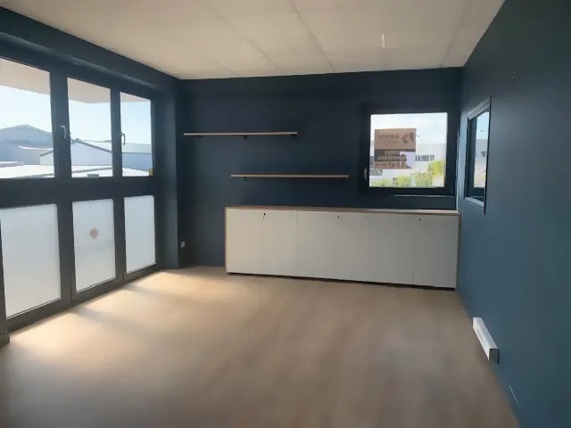 A LOUER SECTEUR VANNES-EST, Beau plateau de bureaux contemporains d'environ 115 m² composé d'un couloir accueil, salle détente-openspace, 3 bureaux, réserve-espace archives-imprimantes etc..., wc dames, wc hommes, douche. Parking important dévoué à la copropriété. BELLE RENOVATION, bureaux très agréables et bien équipés.