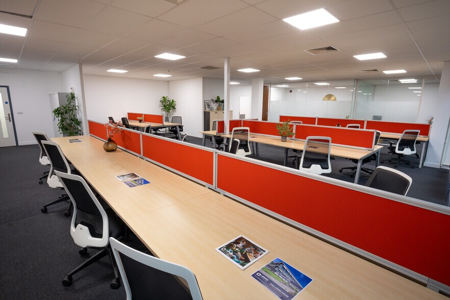 Flexible serviced office space offering fully furnished, modern offices with super-fast internet, an on-site maintenance team, manned reception, and ample car parking. There are also three meeting rooms available in the building at a cost of £34 per hour.