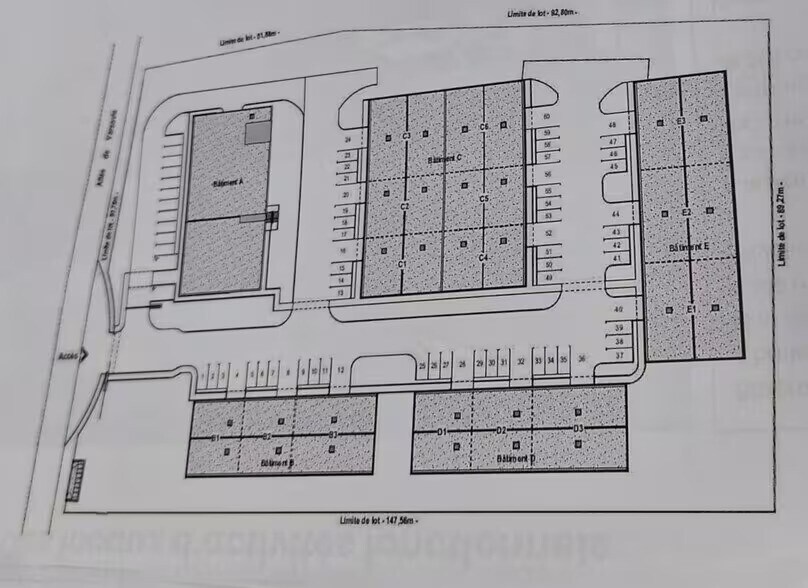 Il est équipé d'une porte sectionnelle 4 x 4,5 m et d'une entrée piétonne et est raccordé aux réseaux électricité, fibre, eau, assainissement.