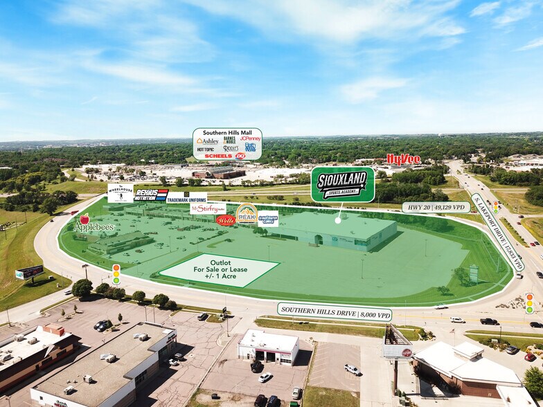 The property is anchored by Automatic Equipment Manufacturing d/b/a Siouxland Sport Academy that lease does not expire until 2034. However, for an owner/operator it can be available. Provides the opportunity to acquire a multi-tenant shopping center in Sioux City, IA, featuring a strong mix of national and regionally established tenants, including SalonCentric, Wells Blue Bunny, Midway Uniform, and Peak Performance. The property offers stable in-place income supported by long-term leases with scheduled rent escalations, enhancing predictable cash flow and long-term value. The majority of tenants operate under NNN lease structures, reimbursing their proportionate share of common area maintenance, real estate taxes, and insurance—minimizing landlord expense exposure. Additional revenue is generated from established outparcel users, including Applebee’s and a Japanese steakhouse, further strengthening the asset’s income profile. The offering also includes future development potential, highlighted by an available pad site positioned prominently in front of Siouxland Sports Academy, creating an opportunity for additional value creation and expanded income generation.