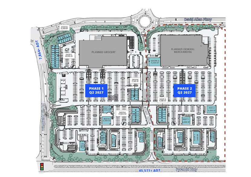 Shops B - 1,500 to 12,000 SF of retail space available (Phase II)