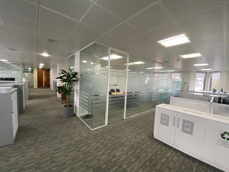 Platinum House comprend un immeuble de bureaux de six étages situé dans le centre-ville de Surbiton, qui a été entièrement rénové il y a environ 6 ans. Les logements disponibles occupent la totalité des 3e et 5e étages (derniers), qui sont tous deux desservis par un impressionnant espace de réception avec 3 ascenseurs pour dix personnes. Les deux étages ont été aménagés selon des normes très élevées et sont actuellement divisés en deux ailes, dont les plus grandes sont principalement ouvertes. Les ailes les plus petites comportent un certain nombre de salles de réunion vitrées cloisonnées. Il y a des salles de serveurs dans chaque aile et au centre de chaque étage se trouve une impressionnante cuisine/espace de détente offrant une vue panoramique à 180 degrés sur Hampton Court. Les deux étages bénéficient d'une excellente lumière naturelle et d'une vue impressionnante sur les toits de Surbiton. Les sols sont actuellement entièrement meublés avec des bureaux, des chaises et des tables de réunion de haute qualité. Ils sont également entièrement câblés afin de fournir une solution prête à l'emploi si nécessaire. Il y a des toilettes réservées aux hommes, aux femmes et aux personnes handicapées ainsi qu'une salle de douche à chaque étage. Un bon parking sécurisé et des supports à vélos sont disponibles dans le parking situé sous le bâtiment.