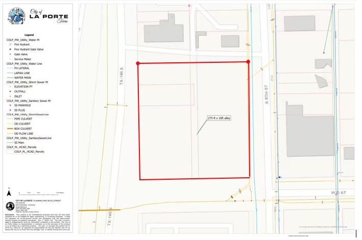 Haut et sec. 1,66 acre avec deux coins et 275 pieds de State Hwy. 146 de façade. Dimensions 275 x 265. La rue D au sud facilite l'accès. Terrain utilisable à 100 %, pas de ruelle et aucune détention requise. Services publics complets fournis par la ville de La Porte. Commerce général zoné (C 1)