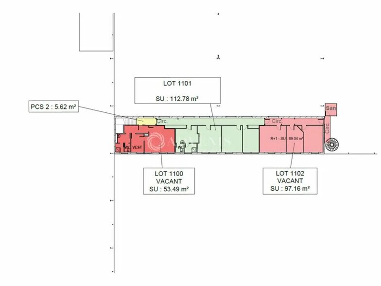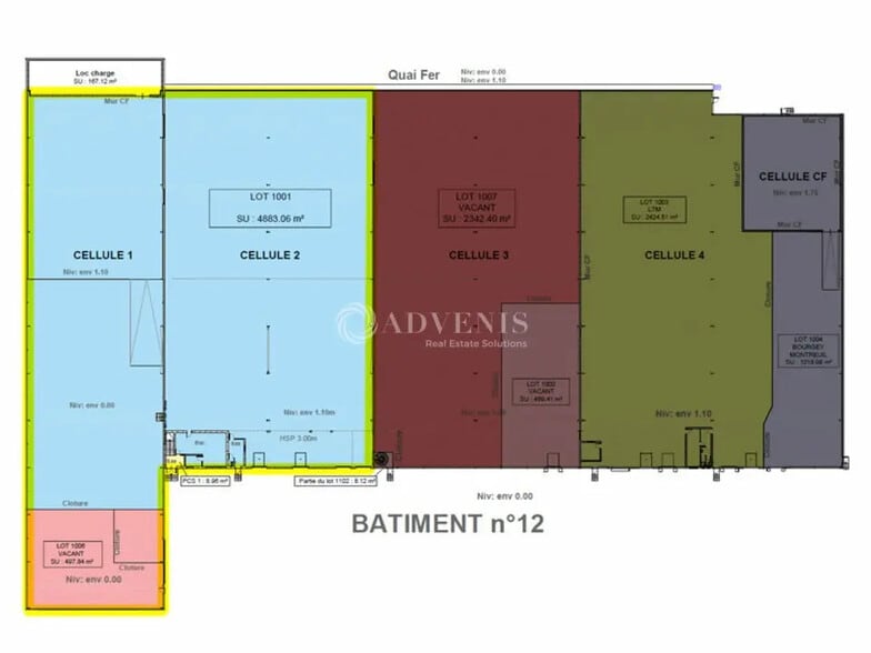 | Bureau 1001 + 1006 | 5 381 m² | 3/6/9 | 45,00 € HT-HC/m²/an 3,75 € HT-HC/m²/mois 242 138 € HT-HC/an 20 178 € HT-HC/mois | Industriel/Logistique | - | Maintenant |