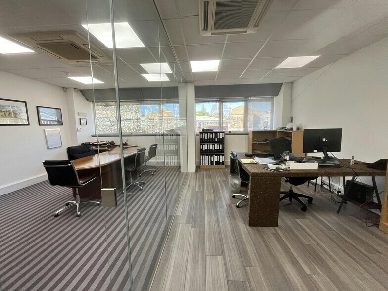 The ground floor contains a meeting room facility, workspace and storage with good floor to ceiling heights (3.2 M). Connected by internal stair ways, the first-floor office is equipped with a modern fitout, kitchenette, internal storage,and air conditioning as well as benefiting from good natural light. The property is of steel framed construction on two floors with cavity brick walls, double glazed windows and concrete flooring, under a shallow pitch panel clad roof.