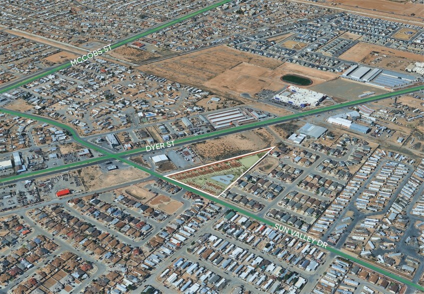 A total of 3.46 acres of land located on the corner of Pheasant street and Sun Valley Dr. just a block away from Dyer St. This is an ideal location for residential, multi-family, self-storage and or flex warehouse developments as it provides an easy and convenient location surrounded by residential and commercial developments. This property is currently zoned A-M for apartments and/or mobile home development.