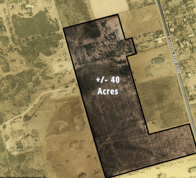 +/- 40 acres of commercial land divisible into 10-20 acre lots. Located outside city limits (ETJ zoning), outside flood zone, with easy access via County Road 140 in Midland, TX 79706.