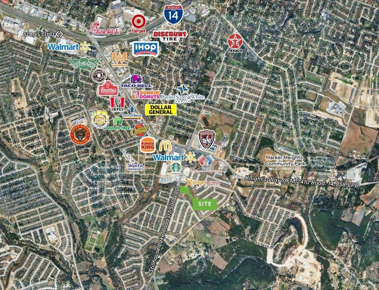 - Located less than ½ mile from hard corner of Knights Way (FM 2410); major anchors include Walmart & Harker Height High School