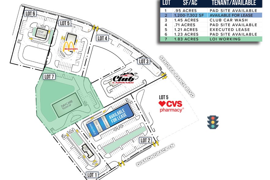 Vente au détail de nouvelles constructions à louer et sites de construction disponibles à la location ou à la vente. Embout Drive Thru disponible. Tampons livrés « prêts à l'emploi ». À côté de l'école primaire Sendera Ranch et de la pharmacie CVS. À proximité de nombreux nouveaux développements résidentiels : Sendera Ranch (9 200 lots), North Star II (2 124 lots) et Green Brick Partners (2 200 lots). Zonage : E (Haslet). Stratégiquement positionné dans le quadrant nord-ouest de Diamondback Ln et Sendera Ranch Blvd