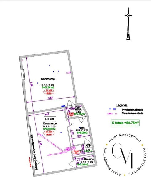 | Surface du lot | 89 m² | Usage du lot en coprop. | Local commercial |