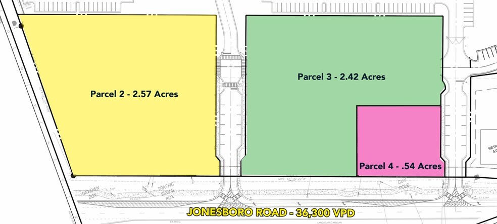 Located on Jonesboro Road (GA Hwy 138) with strong visibility and traffic flow (36,300 vehicles per day), the sites are ideally suited for retail, service, restaurant, or professional uses. Co-tenancy along Jonesboro Road includes Starbucks, City BBQ, Race Trac and Tim Hortons. Direct access includes a right-in and right-out egress from Jonesboro Road and a full red-light interchange with access via Mt. Carmel Rd. Henry County has identified Parcels 2 and 3 as preferred locations for multi-tenant development, supporting long-term value and tenant demand.