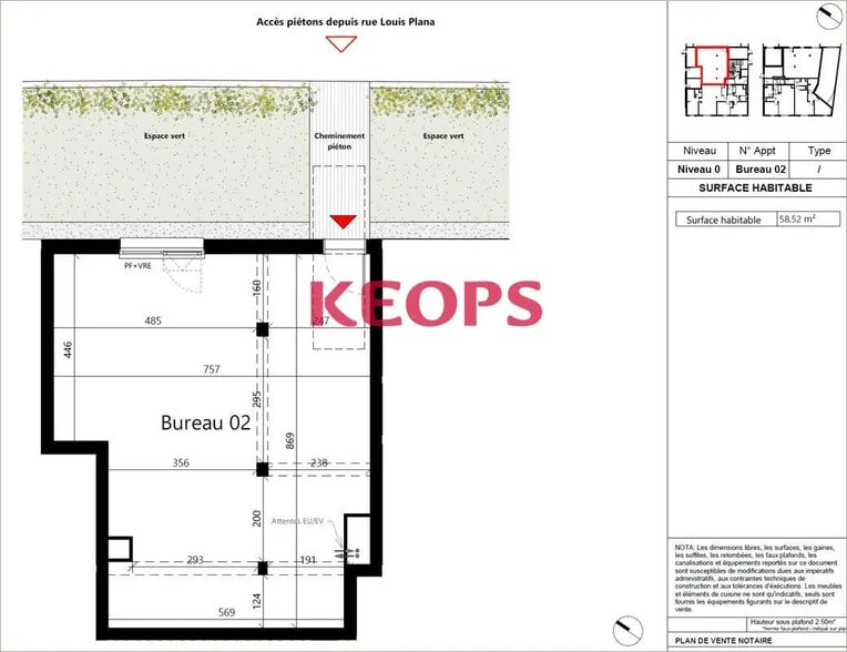 | Surface du lot | 58 m² | Usage du lot en coprop. | Bureau |