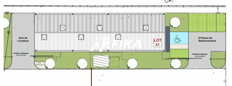 L'ensemble est conçu avec une structure métallique, bardage double peau, toiture isolée, sol charge lourde, hauteur sous poutre: 7m. Deux portes sectionnelles viendront équiper ce bien qui propose 6 places de parking.