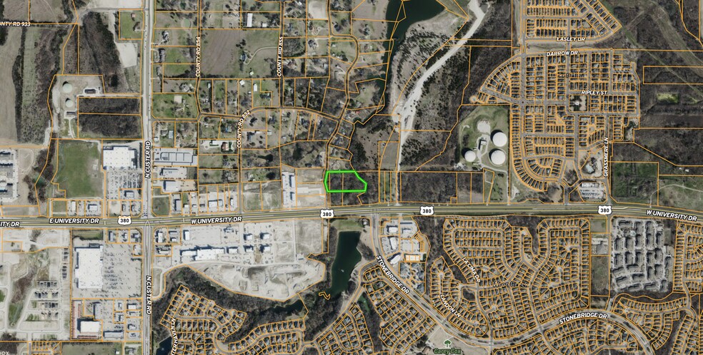 Propriété de premier ordre avec 505 pieds de façade attrayante sur l'autoroute 380. Boisé avec un ruisseau qui coule à l'est de la propriété, ce qui permet de construire des terrains avec vue sur le ruisseau pour les résidences ou les bureaux. Étangs d'eau le long de la 380. L'établissement est accessible depuis la route départementale 856. Comprend les colis 973432, 973441, 966477. Planification future : mélange suburbain - quartier et commerce léger.
