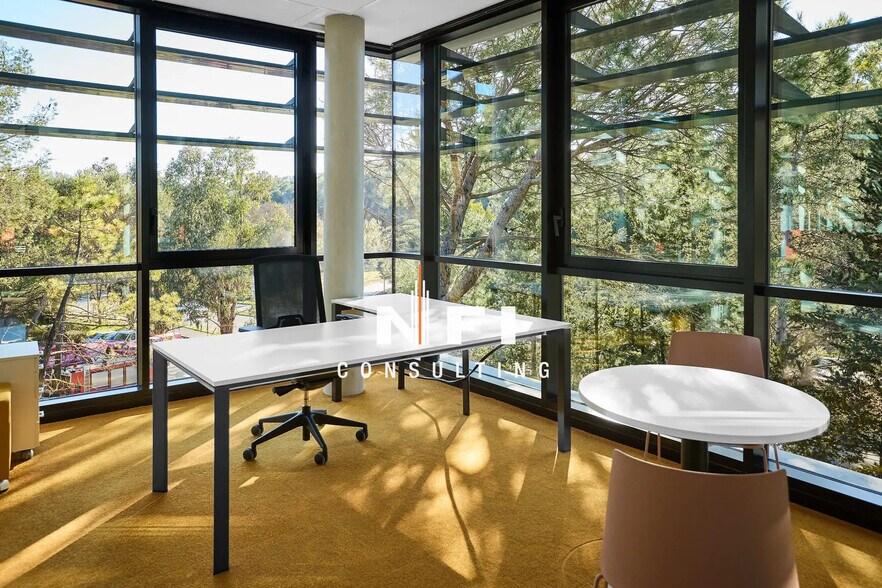 Notre agence NFI Consulting a le plaisir de vous proposer, en exclusivité, une opportunité rare au sein du site Centrium, l’un des bâtiments les plus emblématiques de la technopole, lauréat du Grand Prix SIMI 2023. Ce plateau de bureaux de standing, situé en étage, développe une surface de 486 m² agrémentée de deux terrasses privatives. Véritable solution « prêt-à-l'emploi », l'espace est loué entièrement aménagé et meublé (mobilier quasi neuf). Il dispose d'un accueil élégant, de cloisons vitrées toute hauteur et d'un câblage réseau complet. Grâce à son vitrage sol-plafond, chaque espace est baigné de lumière naturelle. Certifié BREEAM Very Good, l'immeuble offre des services premium : restauration et salle de fitness directement sur site. Ce lot est complété par 19 emplacements de parking privatifs, dont certains pré-équipés pour la recharge électrique. Stratégiquement situé à proximité de la Route du Parc, le site offre un accès direct à l'autoroute A8 ainsi qu'aux axes Cannes et Grasse.