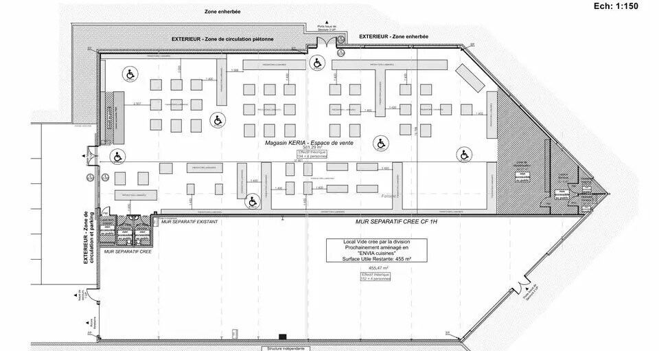 | Espace total disponible | 676 m² | Type de bien | Local commercial |