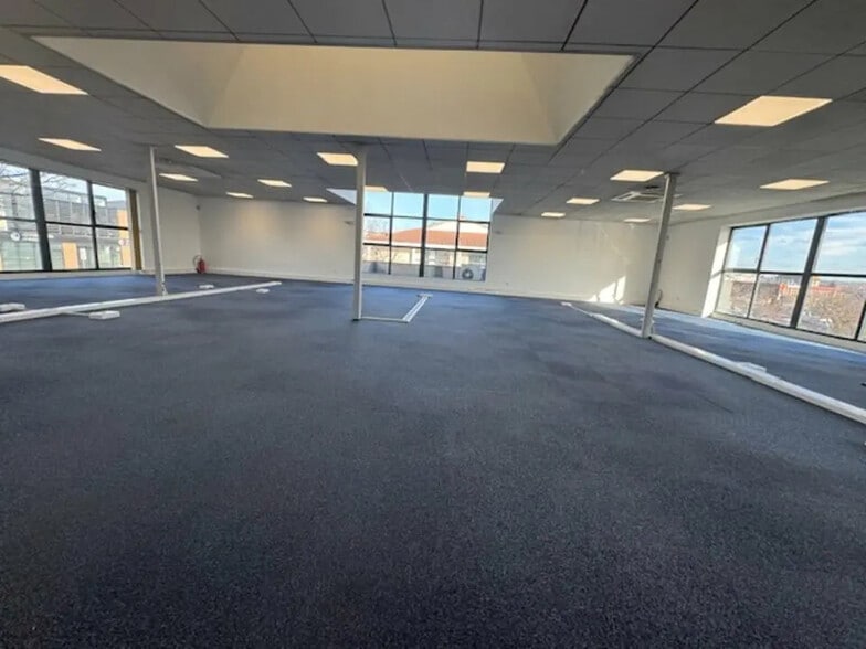 Bureaux à Vendre, plateau avec open space, salle de réunion, cuisine, au 1er étage d'un immeuble de bureaux équipé d'un grand parking