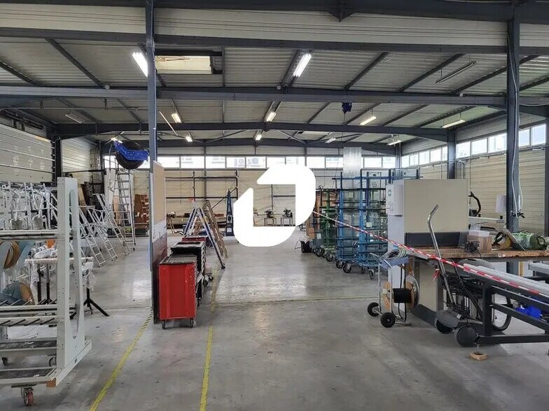 775 m² dédiés au stockage / atelier; 246 m² de bureaux et locaux sociaux ; Terrain de 2 402 m² ; Mezzanine ; 2 portes sectionnelles électriques (5 m larg. x 4 m haut); courant triphasé ; 17 places de parking ; Accès poids lourds et véhicules légers.