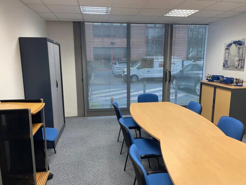 Prestations bureaux : hall d'accueil, bureaux cloisonnés, câble informatique, climatisation, chauffage électrique