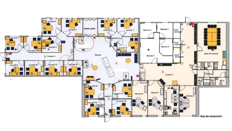VILLEURBANNE LA PERRALIERE - Vente libre de toute occupation - Ensemble de bureaux en bon état général d'une surface totale de 485,25 m2 en rez-de-chaussée composé d'une vaste salle d'accueil avec zone d'attente, d'une salle de réunion, une salle de convivialité, 24 bureaux (entre 8m2 et 20 m2), un local technique, un local ménage, un local informatique, un espace sanitaire composé de 4 WC. Le local dispose de 4 accès PMR.