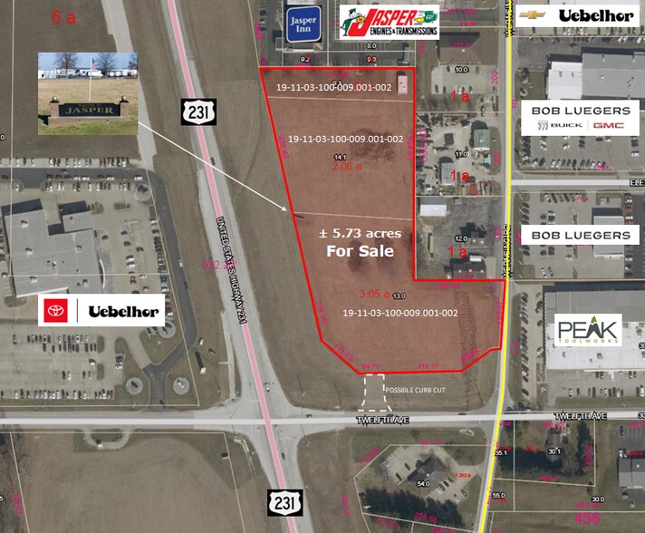 Positioned at one of Jasper’s most visible and highest-traffic intersections, this 5.73-acre corner parcel presents an exceptional opportunity for investors or developers seeking a strategically located, commercially zoned site in one of Southern Indiana’s most active growth corridors. Situated at the signalized intersection of US Highway 231 and Twelfth Avenue, the property benefits from outstanding vehicular exposure supported by traffic counts approaching 15,000 vehicles per day, ensuring strong long-term relevance for retail, service, hospitality, or mixed-use development.