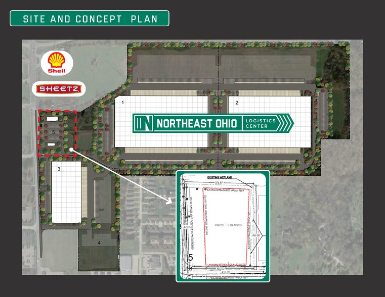Jusqu'à 3,93 AC Retail Development Outparcel Site. Situé à côté du Sheetz récemment construit et situé à la périphérie du nouveau centre logistique du nord-est de l'Ohio de 1,1 million de pieds carrés.