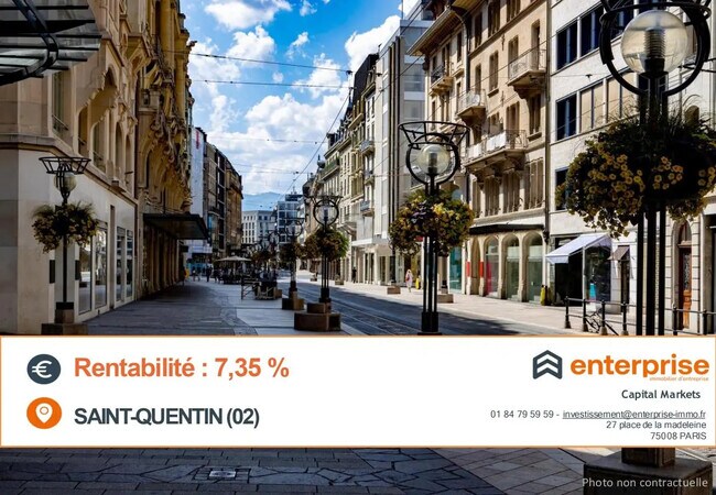 A VENDRE OU A LOUER PROGRAMME COMMERCIAL NEUF SAINT-QUENTIN (02) Sur la commune de Saint-Quentin (Aisne), au cœur d'un environnement commercial de loisirs (Bowling, padel, karting à venir)en plein essor, ENTERPRISE Immobilier d'Entreprise vous propose un programme immobilier neuf à usage commercial, en état futur d'achèvement. Surface développée : environ 1 240 m² Terrain indépendant : environ 19 477 m² Grande hauteur sous poutre : 6 m, idéale pour optimiser l'aménagement de vos espaces Les + du site : Local commercial neuf et modulable selon vos besoins Forte visibilité et accessibilité Stationnement adapté et aisé Emplacement stratégique au sein d'un pôle commercial dynamique Enseignes présentes dans l'environnement immédiat : DÉCATHLON, AUCHAN, QUICK, GEMO, GAMM VERT, AUBERT… Un voisinage commercial attractif garantissant un flux constant de clients. Conditions financières : Prix de vente : 1300 € HT/m2 Hors droits Hors honoraires Honoraires de commercialisation : 5 % HT du prix HT HD à la charge de l'acquéreur Location possible : conditions financières sur demande Une opportunité rare à saisir avec ENTERPRISE Immobilier d'Entreprise Amiens 03 22 500 800 Prestations : Hauteur des bâtiments : 7 m environ Isolation RT 2010 double peau avec toiture en étanchéité Dalle quartzée au sol lisse béton Electricité : Tarif jaune ou bleu selon les besoins Hauteur des bâtiments : 7 m environ Isolation RT 2010 double peau avec toiture en étanchéité Dalle quartzée au sol lisse béton Electricité : Tarif jaune ou bleu selon les besoins